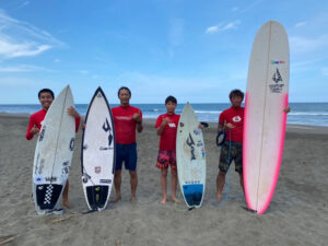 先月開催したジュニアサーフィン体験で行ったビーチクリーンできれいになったビーチでしたが、大雨の影響で川から大量のペットボトルや空き缶が打ち上げられていました。